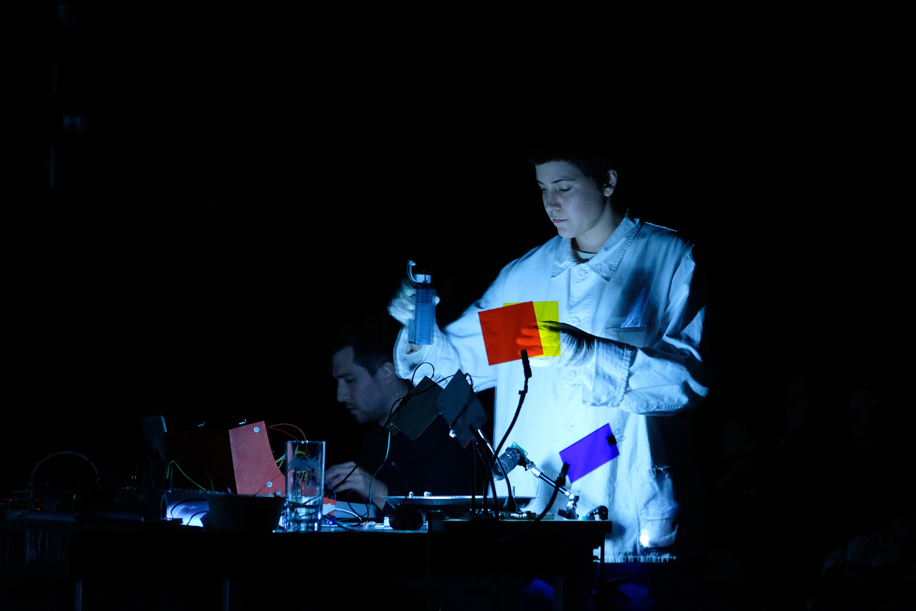 agar agar is an audiovisual performance by Martina Moro and Fabian Lanzmaier. Combining analogue and digital tools they generate a system with its own dynamics and dependencies, where the visual and auditory parts influence each other resulting in a synesthetic experience. agar agar is a performative instrument, a miniature stage, that under many spotlights, reveals an ecstatic choreography of patterns interacting with each other.